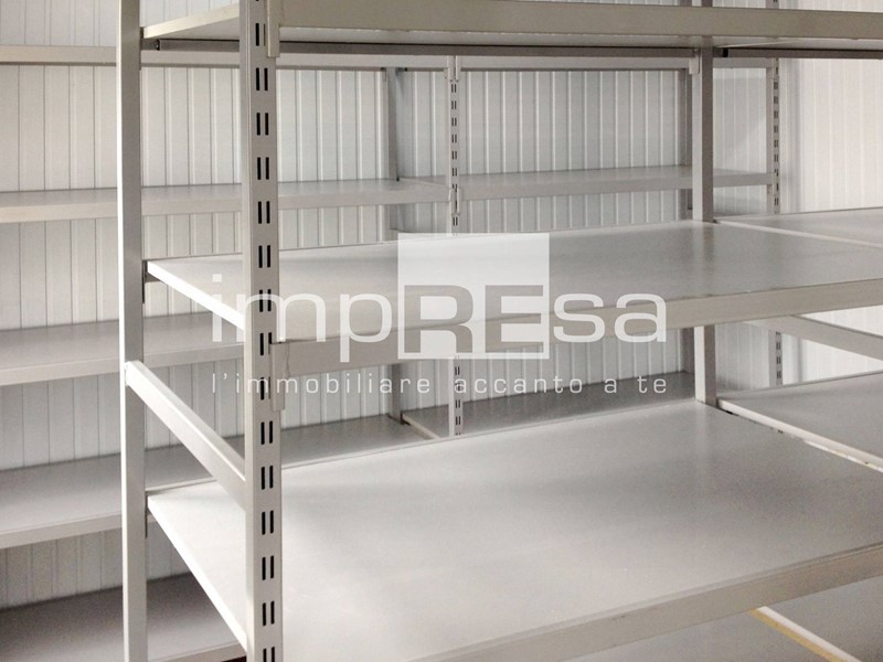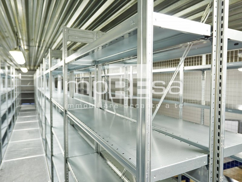Questo spazio è caratterizzato da una struttura a scaffalature portanti che, oltre a servire come stoccaggio, funge anche da soppalco strutturale, sorreggendo parte degli uffici del piano superiore.