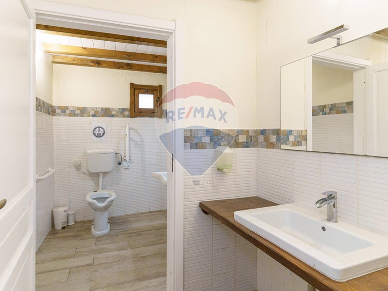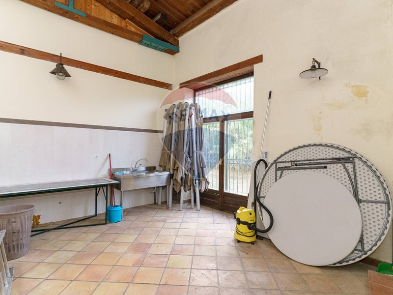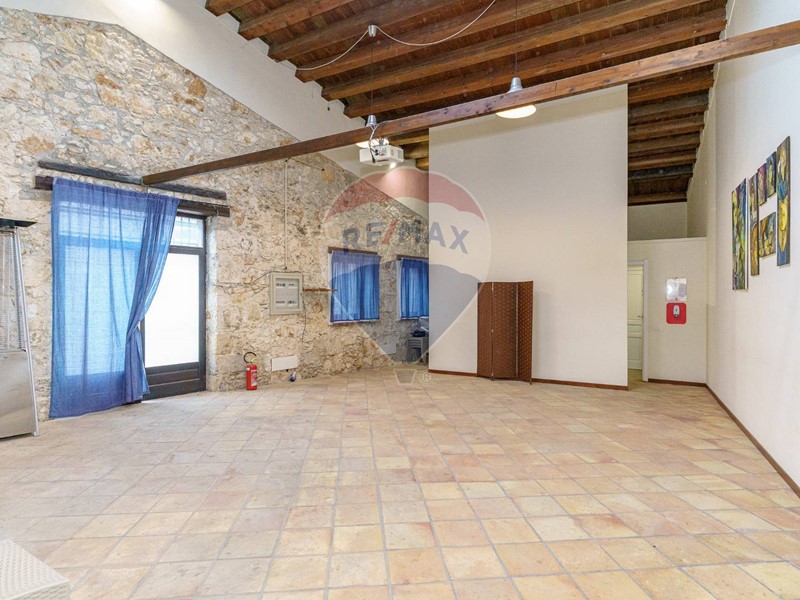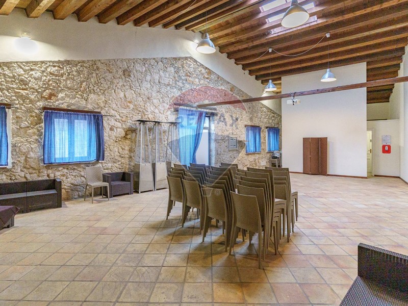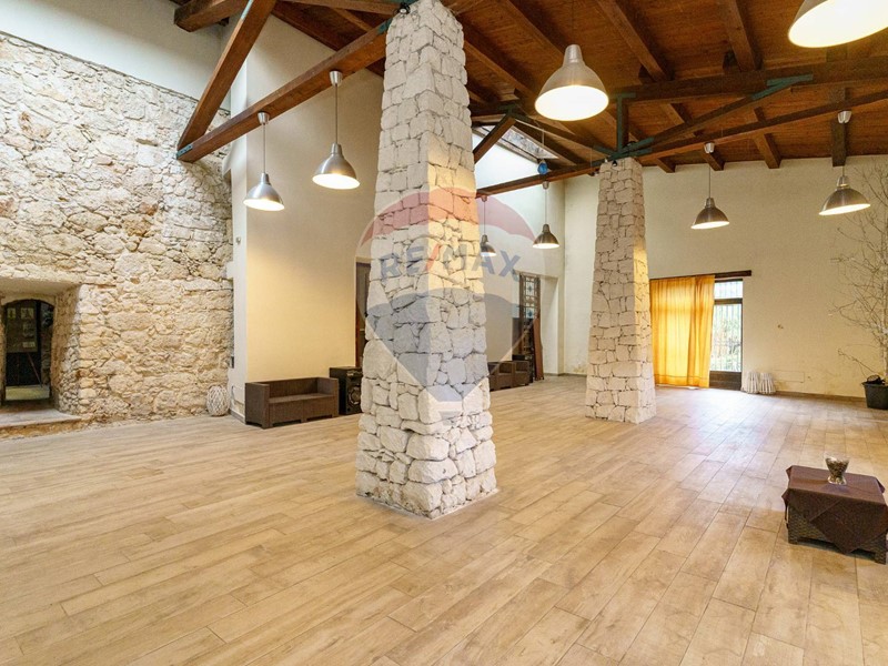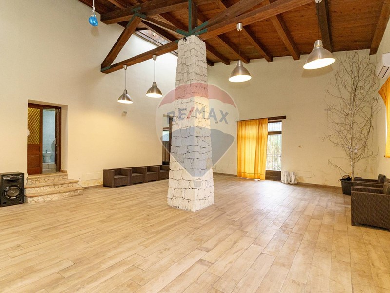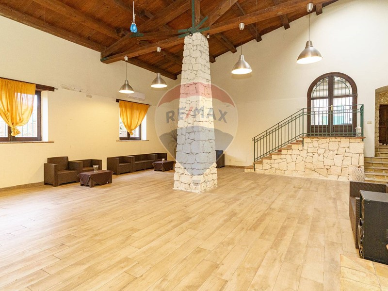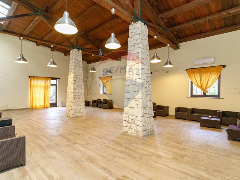 A fianco dell'abitazione troviamo il locale commerciale, attualmente adibito a location per eventi; il salone si estende per una superficie di circa 370 mq suddiviso in una zona utilizzata come cucina o ripostiglio e la restante superficie si articola per essere impegnata sia per eventi quindi commerciale, sia, come previsto dal Prg vigente e previo adeguamento funzionale interno per attività Turistica Ricettiva.