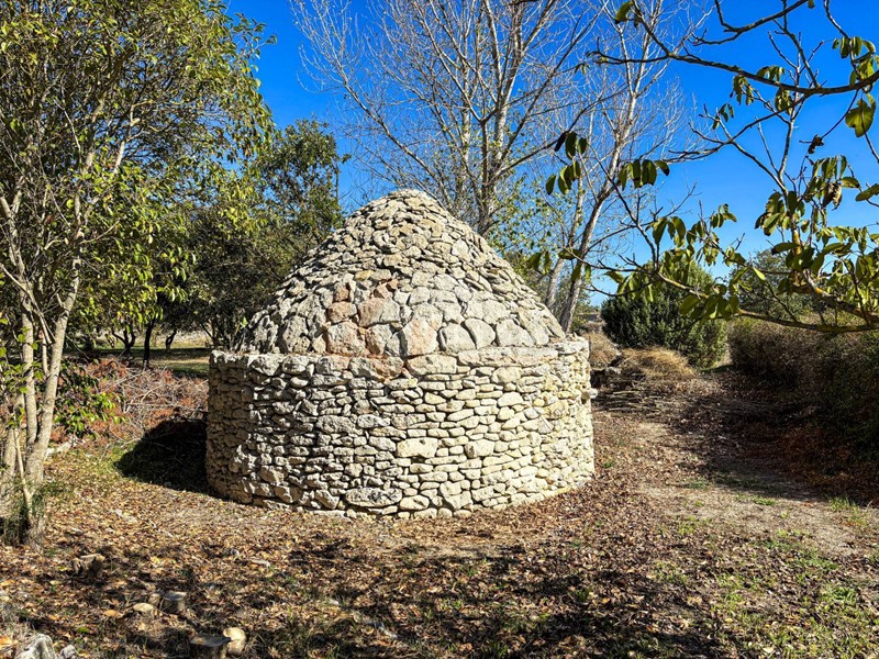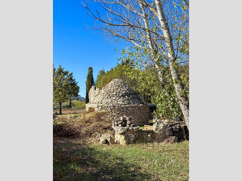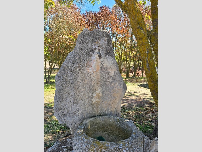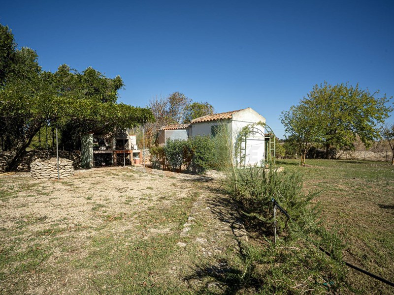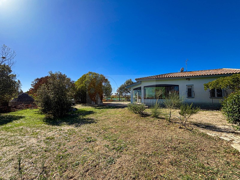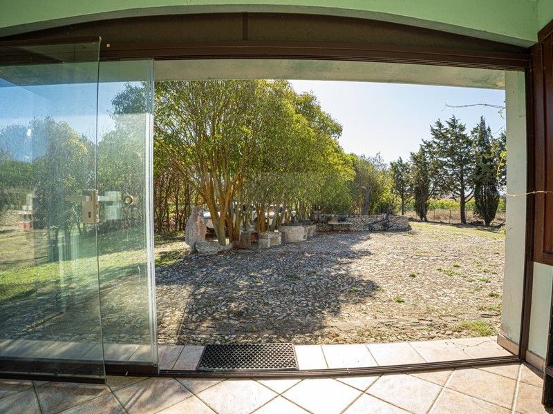 Tutto è curato nei minimi dettagli. Il piazzale circolare antistante, in stile impetraru, accoglie con eleganza grazie alla posa verticale delle lastre in pietra. Il terreno è servito da un impianto di irrigazione ben realizzato, un pozzo regolarmente censito e varie strutture in pietra per cucinare allaperto.