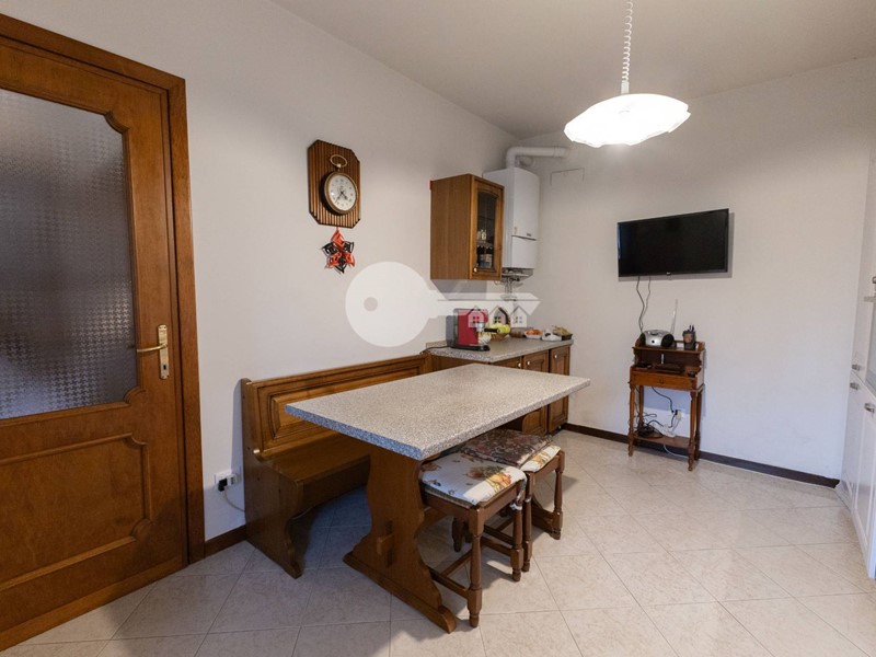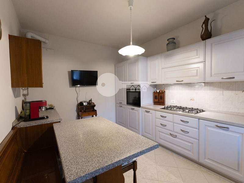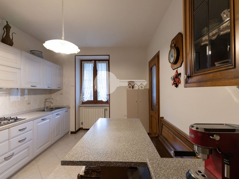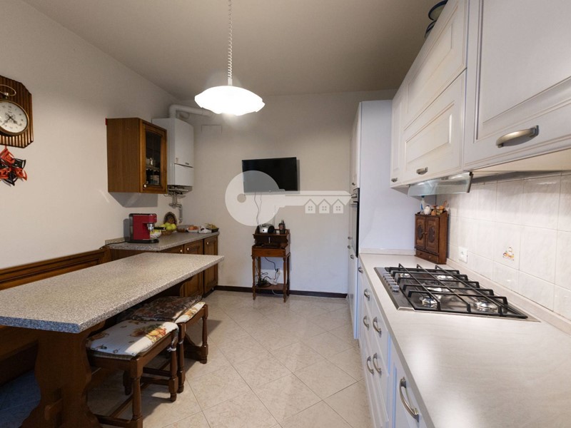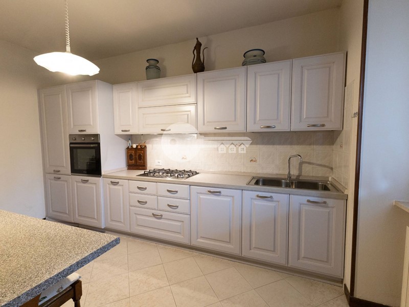 La casa si sviluppa su più livelli: al piano terra troviamo una luminosa zona giorno con affaccio sul portico e una cucina separata abitabile, ideale per chi ama gli spazi comodi e funzionali.