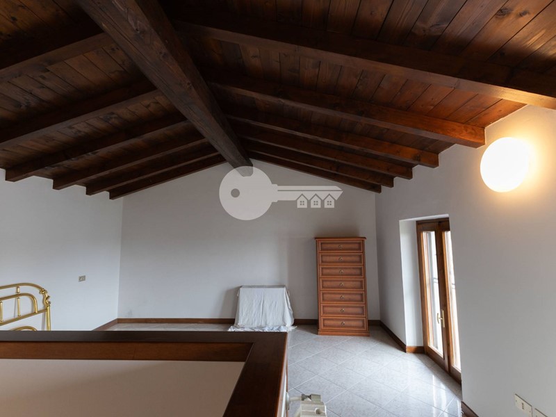 Al secondo piano, una soffitta ampia e accogliente, con travi a vista e doppio affaccio, offre la possibilità di creare una terza camera matrimoniale, una zona relax o uno studio privato, secondo le proprie esigenze.