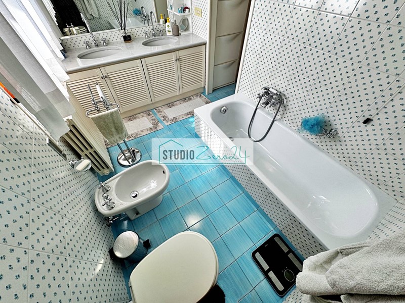 L'appartamento al piano terra accoglie gli ospiti con un ampio soggiorno caratterizzato da un camino, una cucina completamente attrezzata e una sala da pranzo con accesso al suggestivo portico esterno. La zona notte comprende tre spaziose camere da letto e tre bagni, garantendo comfort e privacy.