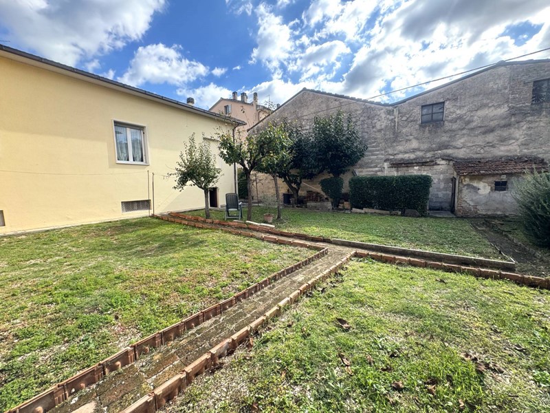 A due passi dal centro della città di Fabriano, l'Agenzia Immobiliare Ninno propone in vendita casa semindipendente con corte esclusiva. L'abitazione si estende su un unico livello, per una superficie di mq 120 circa, con grande e luminoso soggiorno con balcone, tinello e cucinino, tre camere che affacciano sul giardino sul retro, un bagno ed un ripostiglio che può essere utilizzato come secondo bagno. A completare la proposta, al piano seminterrato, locali ad uso taverne con accesso diretto al giardino ed un garage, oltre ad una soffitta al piano primo. Gli spazi esterni, di mq 250 circa, offrono diverse possibilità di utilizzo e l'area verde sul retro della casa gode di privacy. Gli spazi interni sono ben distribuiti e luminosi. Ottima posizione per i principali servizi cittadini, con negozi, stazione ferroviaria e ospedale nelle immediate vicinanze.