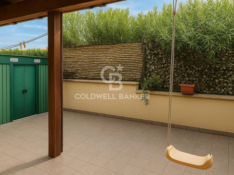 Punto di forza dell'appartamento è lampio terrazzo di circa 25 mq con pergolato, perfetto per pranzi e cene allaperto, o semplicemente per rilassarsi allesterno in totale privacy e silenzio.