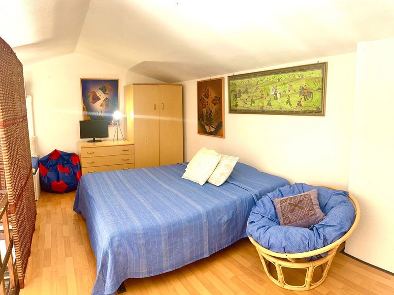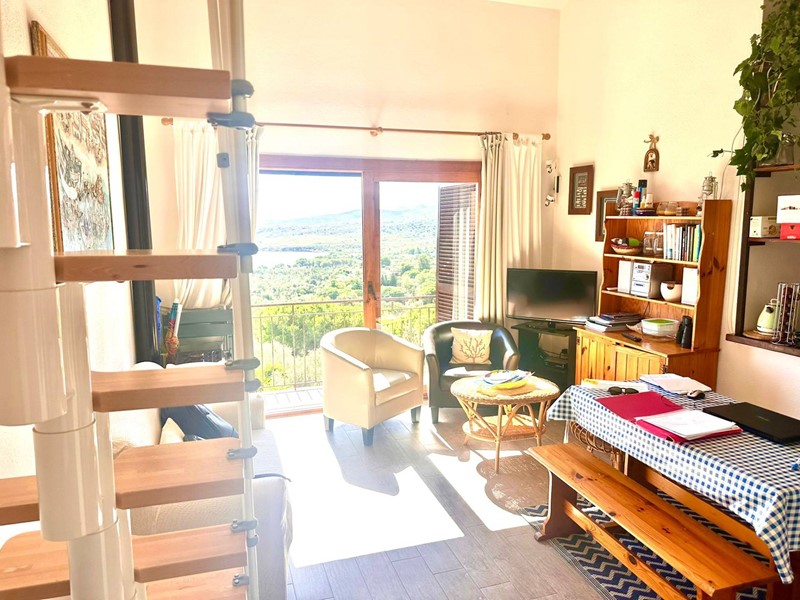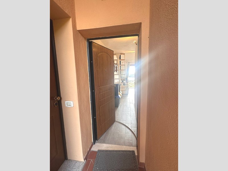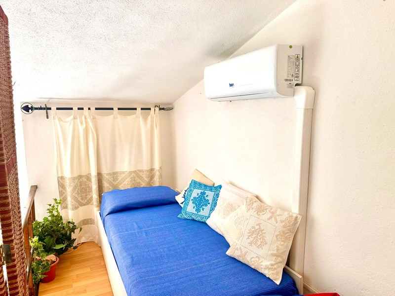 A pochi passi da una delle più incantevoli spiagge della Sardegna nord orientale, si trova questa soluzione immobiliare molto carina e assai confortevole. Il posto auto coperto e riservato si trova proprio di fronte all'ingresso della casa, che è protetto da un portoncino blindato di ultima generazione. Una volta all'interno, troviamo una zona living collegata al cucinotto da un piano americano. Dalla parte opposta, un piccolo ma utilissimo spazio chiuso adibito a ripostiglio che ospita la lavatrice e altri utensili utili. Un disimpegno separa la zona giorno dalla zona notte, dove possiamo trovare una camera matrimoniale con annesso finestrato bagno con doccia. Dalla zona living, grazie ad una scala in legno comoda e funzionale, si accede ad un ampio soppalco con finestra, dove trovano posto altri due letti (uno singolo ed uno matrimoniale) che portano a cinque posti letto totali. Dal soggiorno, attraverso una porta scorrevole, si esce in veranda dalla quale si gode una vista davvero unica sulla spiaggia sottostante e sull'isola di Tavolara. Questa soluzione immobiliare è stata oggetto di recente, di una sapiente e totale ristrutturazione che ne ha, per quanto possibile, accresciuto il valore di mercato : per pavimento, listelli di gres porcellanato che richiamano il legno, i condizionatori in ogni ambiente, una stufa a pellet che consente di abitarci anche nella stagione invernale ed infine, la concessione urbanistica per l'ampliamento della veranda che sarebbe solo la ciliegia sulla torta.