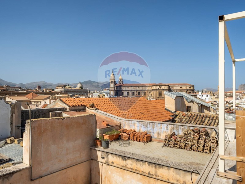 Nel cuore del centro storico di Palermo, tra Corso Vittorio Emanuele e Via dei Cassari, e precisamente in Via Terra delle Mosche n.29, Vi proponiamo la vendita di un luminoso appartamento di circa 130 mq. ubicato all'ultimo piano di una Palazzina che risale al 1600 che è in fase di restauro. Ottima opportunità sia per uso casa vacanza che per abitazione residenziale. La proprietà gode di triplice esposizione, è disposta su tre livelli, in alcune camere presenta i soffitti con travi in legno a vista e presenta laccesso diretto ad un esclusivo terrazzino panoramico. Attualmente l'appartamento è così distribuito: al primo livello troviamo la zona living pari a due comode e luminose camere con finestre e porte finestre che affacciano su balconi, a seguire una terza ampia camera anch'essa finestrata e con balcone, proseguendo, un disimpegno ci conduce al ripostiglio, realizzato nel vano sottoscala, e alla cucina non abitabile ma servita da un delizioso terrazzino che affaccia su una corte interna libera e con vista sul palazzo Ramacca. Dalla scala in legno presente nella zona living si arriva al secondo livello dove troviamo la camera da letto che affaccia su un esclusivo terrazzino e l'ampio servizio finestrato con doccia. Al terzo livello si accede con una una scala che porta al terrazzino panoramico che guarda tutta Palermo, dal mare alle meravigliose cupole delle Chiese del centro storico. E' possibile ridistribuire gli spazi realizzando un appartamento con cucina a vista su zona living, due camere da letto spaziose, due servizi di cui uno in camera. Se non volete perdere l'opportunità di poter realizzare il sogno di vivere in centro storico e di godere di comodi spazi esclusivi e panoramici, Vi invitiamo a contattarci per ulteriori informazioni e per pianificare una visita.