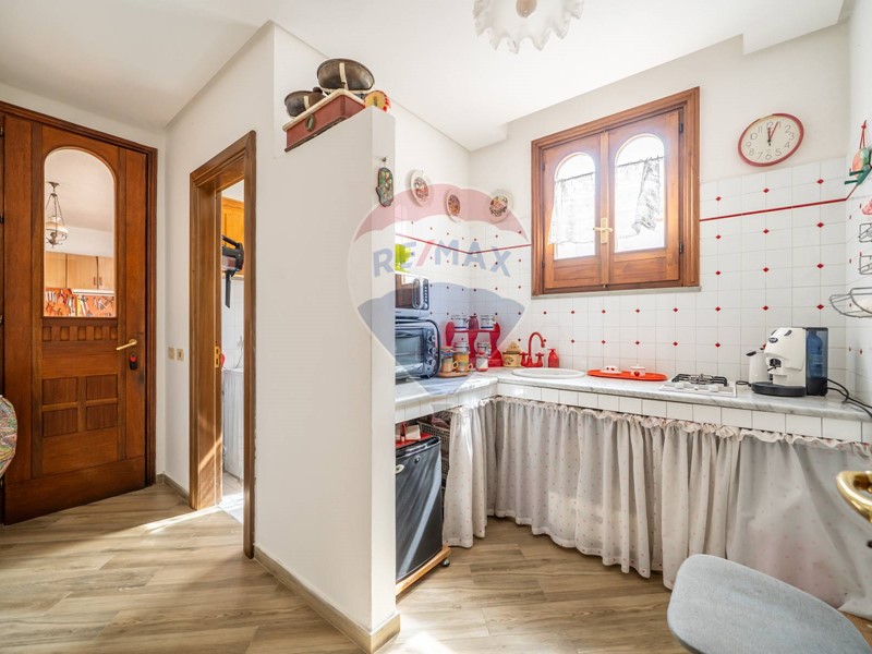 Il piano ospita oltre che una cucina abitabile e un piccolo cucinotto sull'altra ala della villa, anche una ampia camera da letto padronale con bagno riservato arricchito da una utile vasca e una spaziosa cabina armadio.