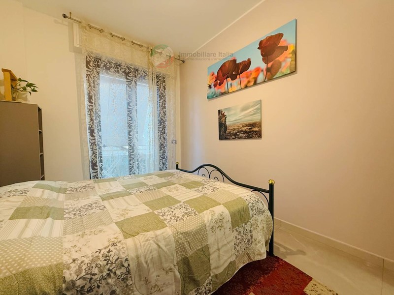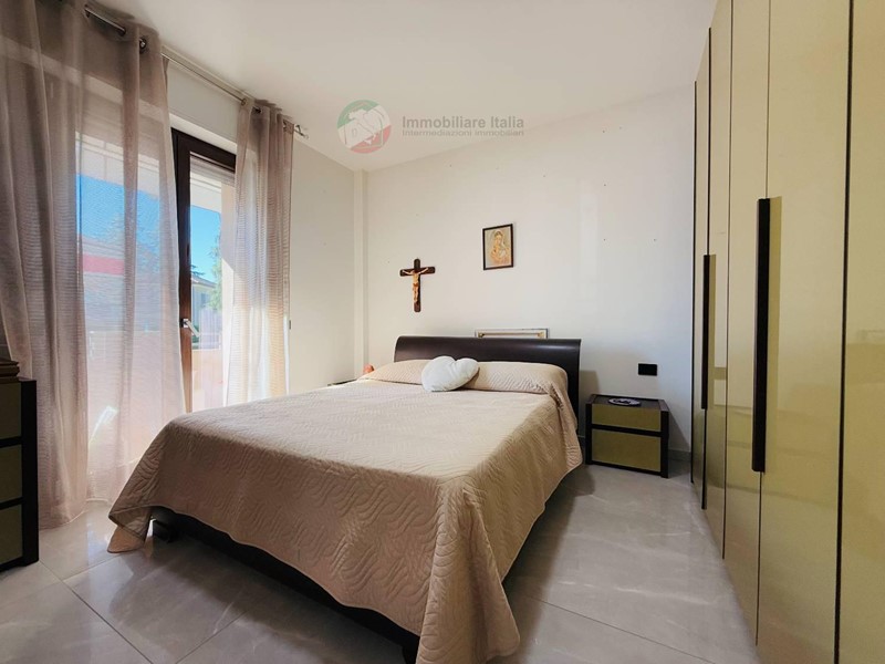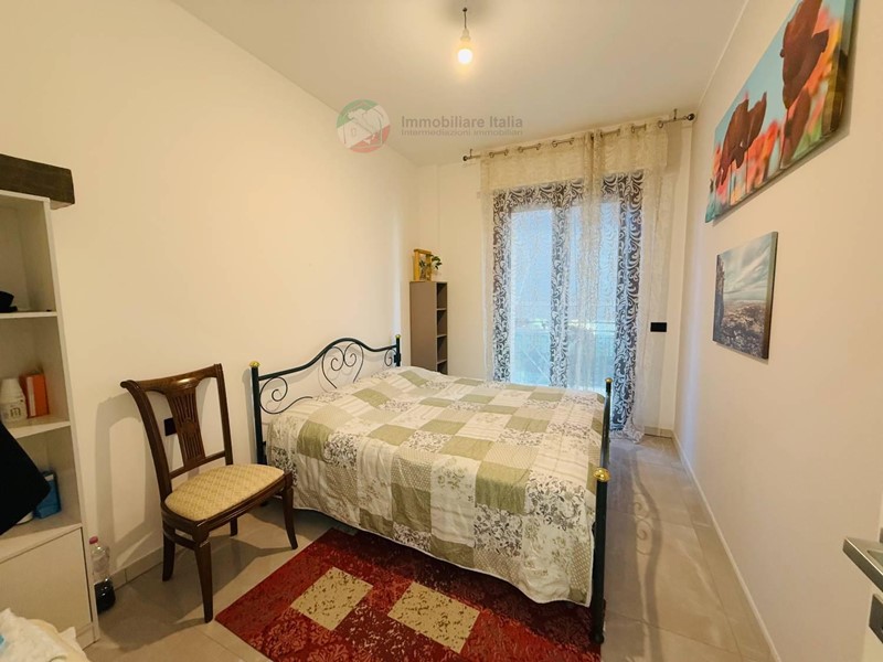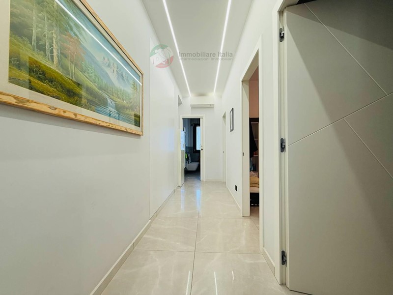 Dal soggiorno si ha accesso al primo dei tre balconi, mentre dall'ampio corridoio, munito di armadiatura a muro, si accede alle tre stanze da letto, che godono di comoda metratura e al bagno. Le stanze sono due matrimoniali e una doppia tutte servite da balcone.