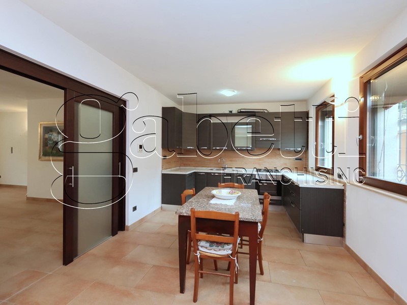 Al piano terra troviamo un ampio ingresso sul salone di circa 45 mq, una cucina/pranzo (arredata) di oltre 20 mq, una zona office con un bagno, una cucina di servizio e una lavanderia.