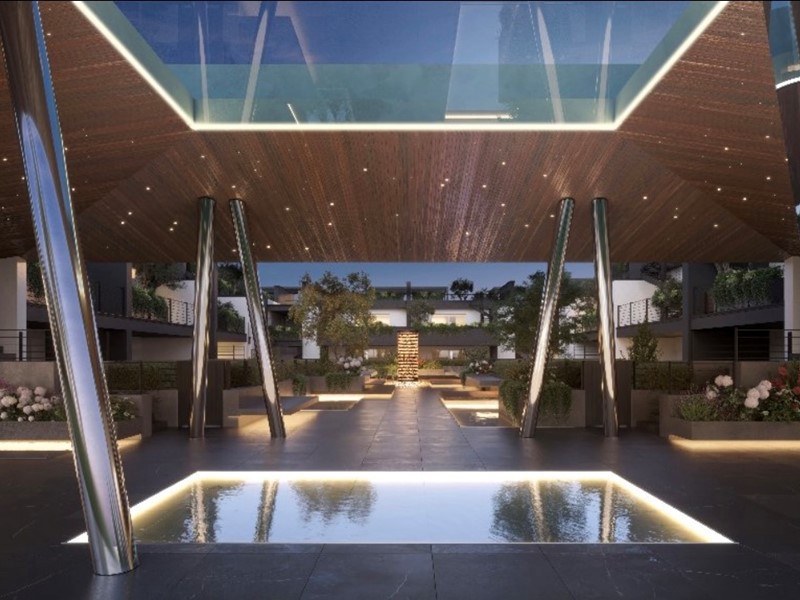 "A Residenze" accoglie i privilegiati ospiti con una galleria di ingresso molto elegante e dispone di spazi collettivi ad uso esclusivo: piscina sospesa con fondo trasparente e con vista lago, Agorà interna con Area Lounge e biblioteca, palestra e fitness area, locale e-bike, lavanderia.