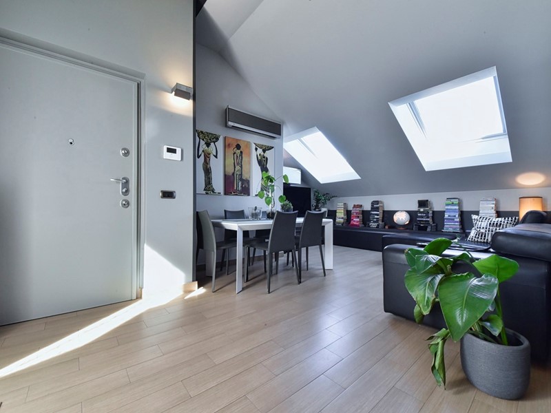 Come potrete evincere dalla documentazione fotografica, l'abitazione si presenta in uno stato manutentivo e conservativo pari al nuovo; gres ceramico effetto legno a pavimento, impianto di climatizzazione di design, serramenti in alluminio doppio vetro a taglio termico, porte interne laccate, video-citofono, riscaldamento centralizzato a consumo, lucernari/velux motorizzati e quant'altro potrete visionare effettuando un sopralluogo nell'immobile.