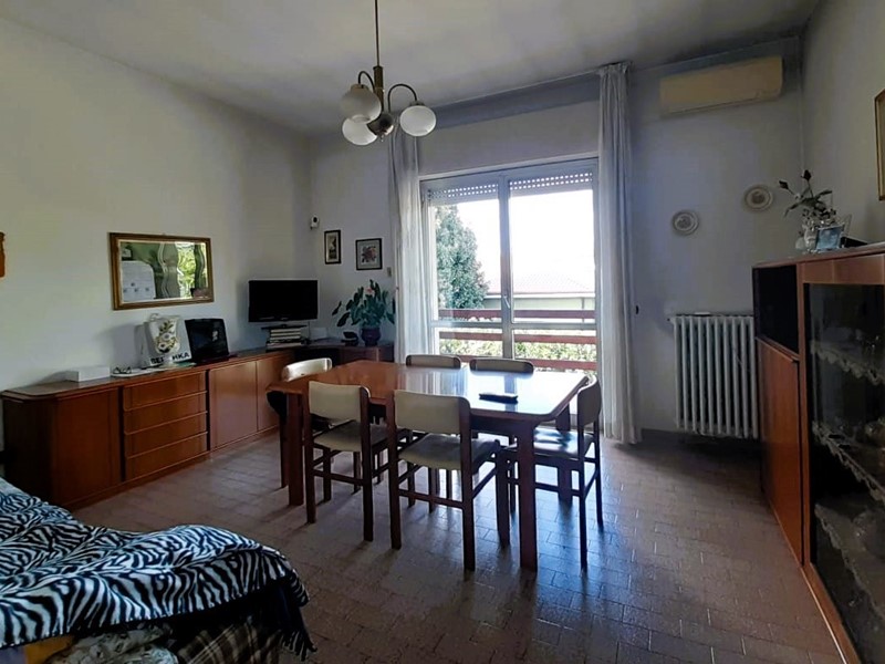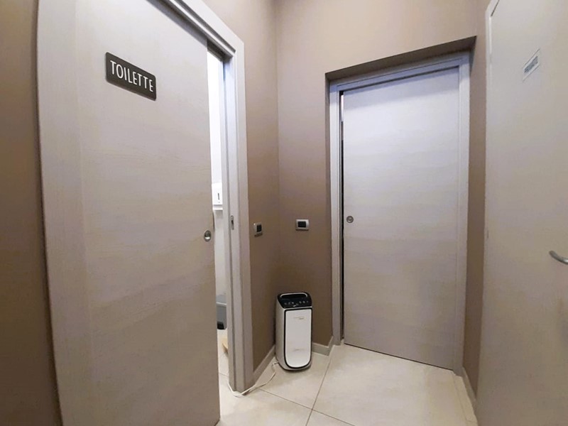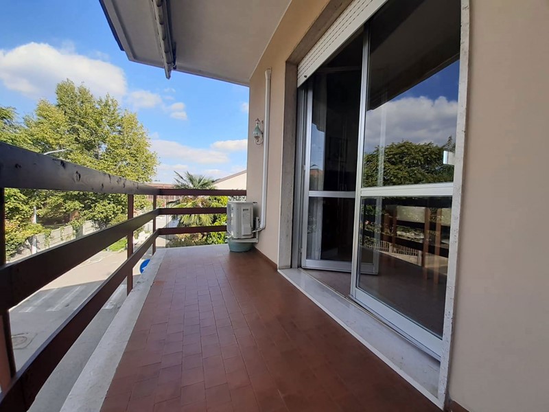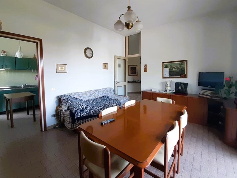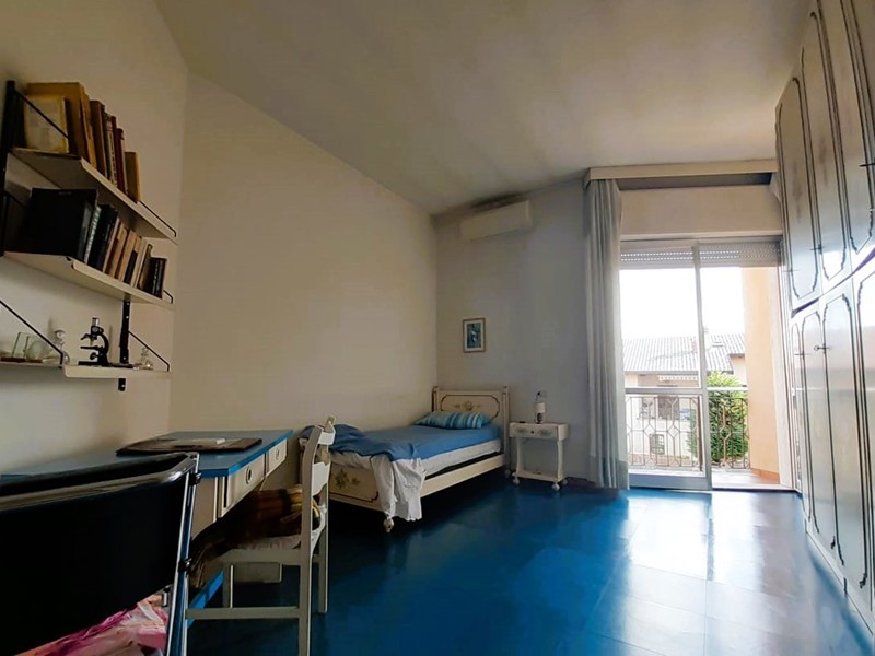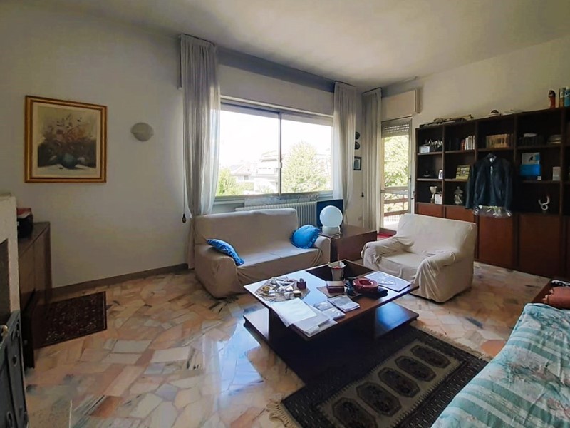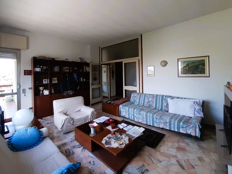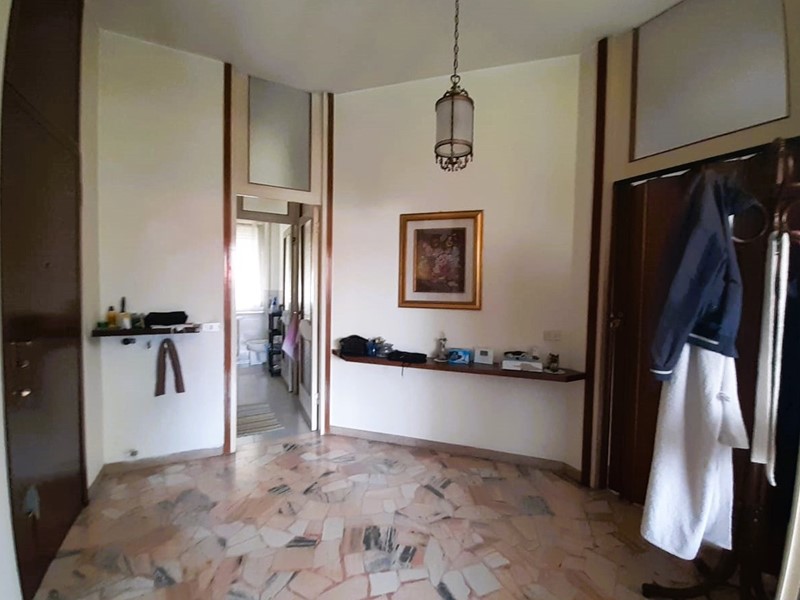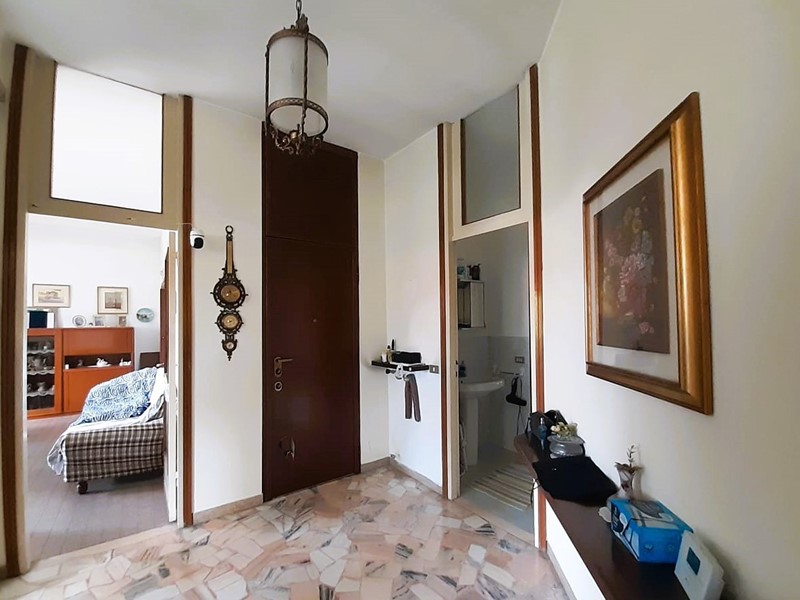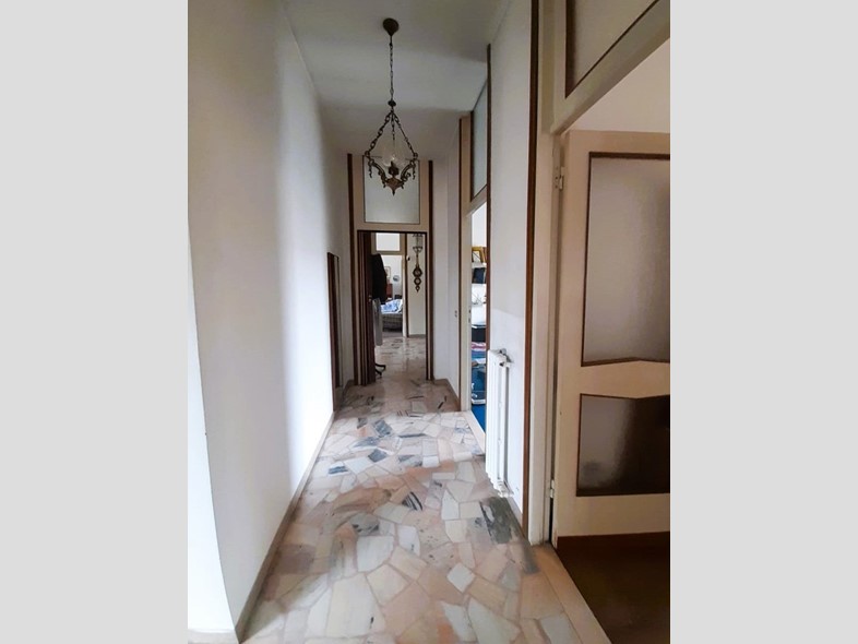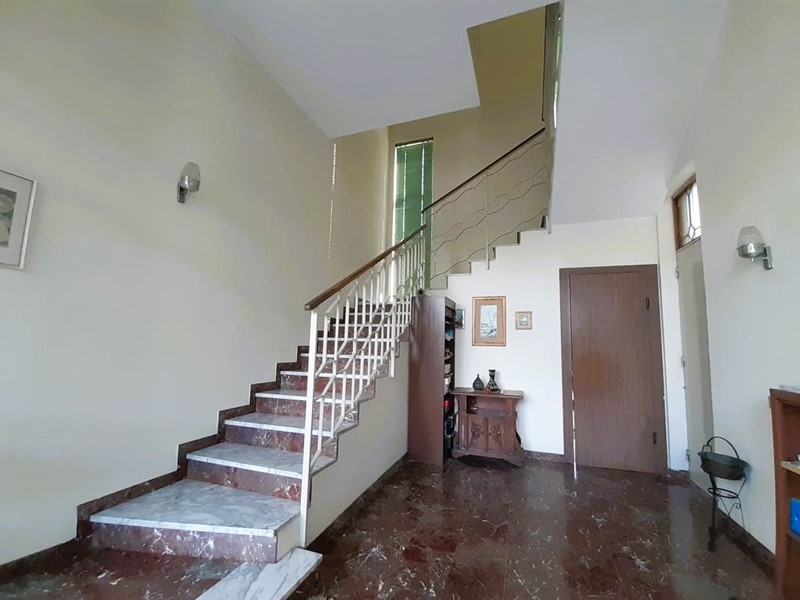 L'immobile è composto al piano terra da ingresso in spazioso disimpegno, scala in marmo che conduce all'alloggio, distribuito su un'unico piano, con ingresso dotato di portoncino blindato, anticamera, salone con camino aperto su ampio balcone, sala da pranzo con cucinotto separato, ripostiglio, doppi servizi, due camere matrimoniali ognuna con balcone e cameretta.