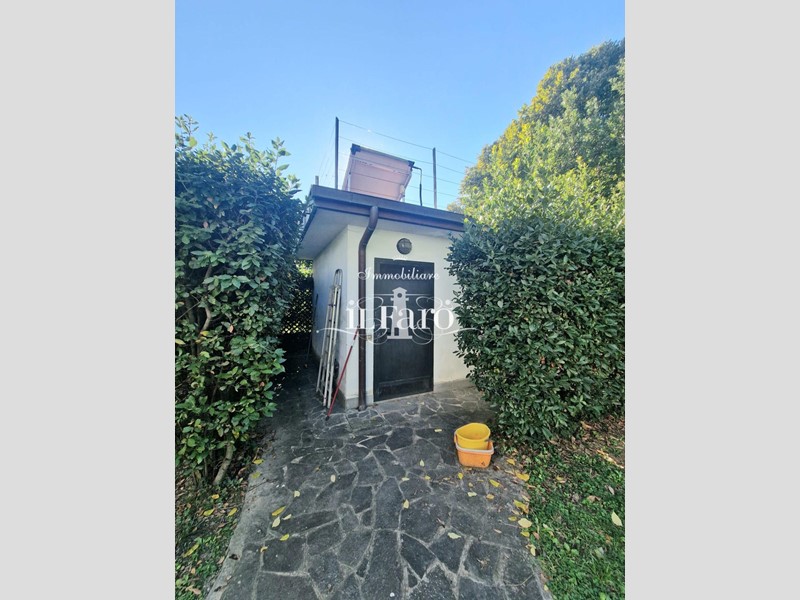 Nel giardino è presente un annesso uso rimessaggio. Questa particolare e rifinita villa è adatta a chi cerca una soluzione per più famiglie continuando a mantenere ognuno la propria privacy .