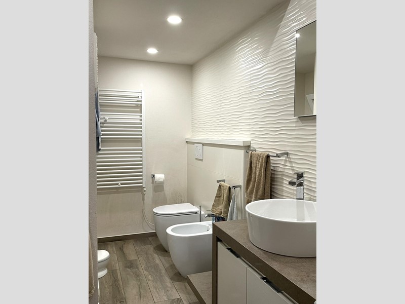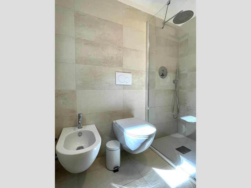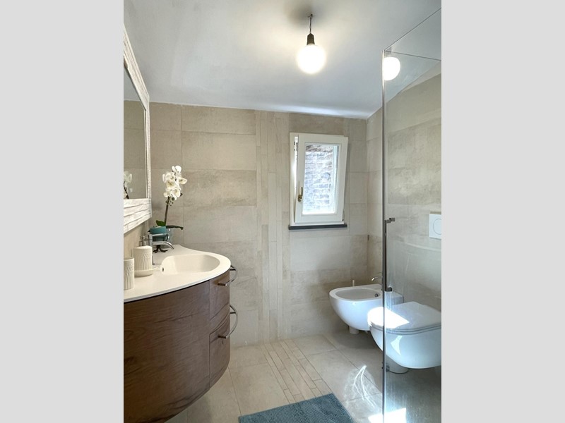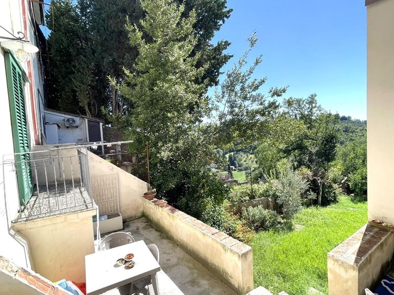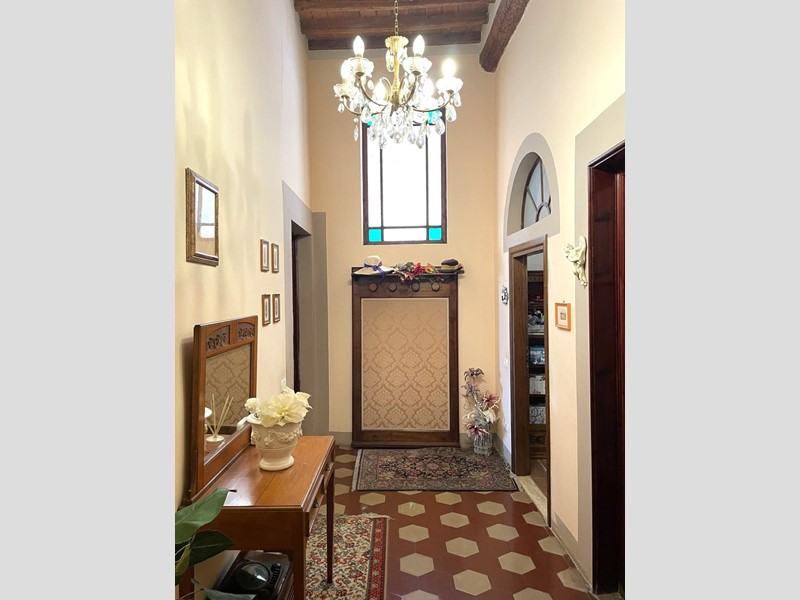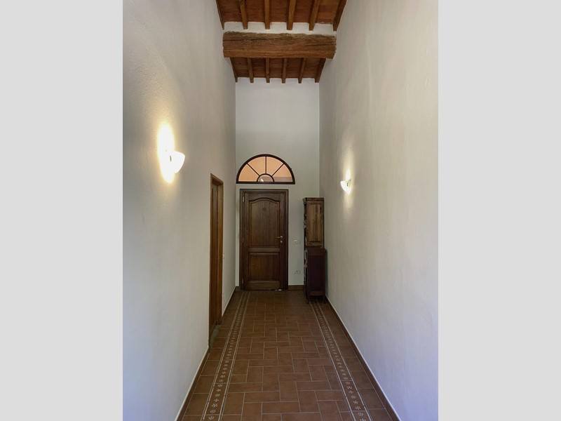 Al primo piano, un accogliente ingresso distribuisce gli spazi: a sinistra, un corridoio porta a due camere da letto, entrambe con bagno privato, e conduce a un ampio soggiorno. Quest'ultimo, luminoso e spazioso, si collega a una cucina con accesso a un terrazzo panoramico sulla valle di San Miniato, e a due ulteriori stanze. Sul lato destro dell'ingresso, un secondo corridoio serve un ambiente con zona cottura, un bagno finestrato e un'ulteriore camera singola.