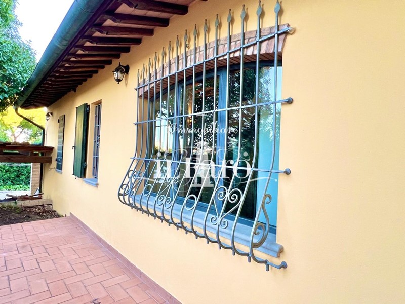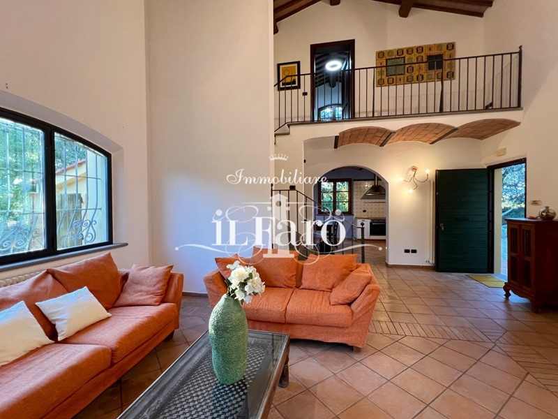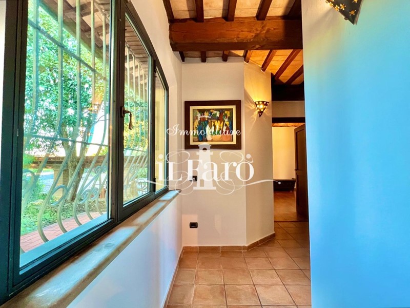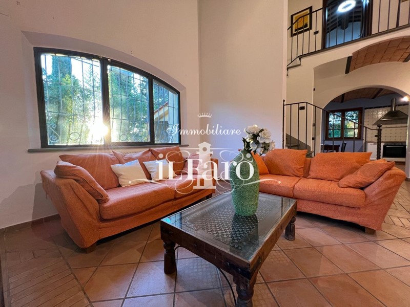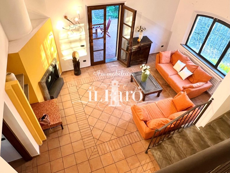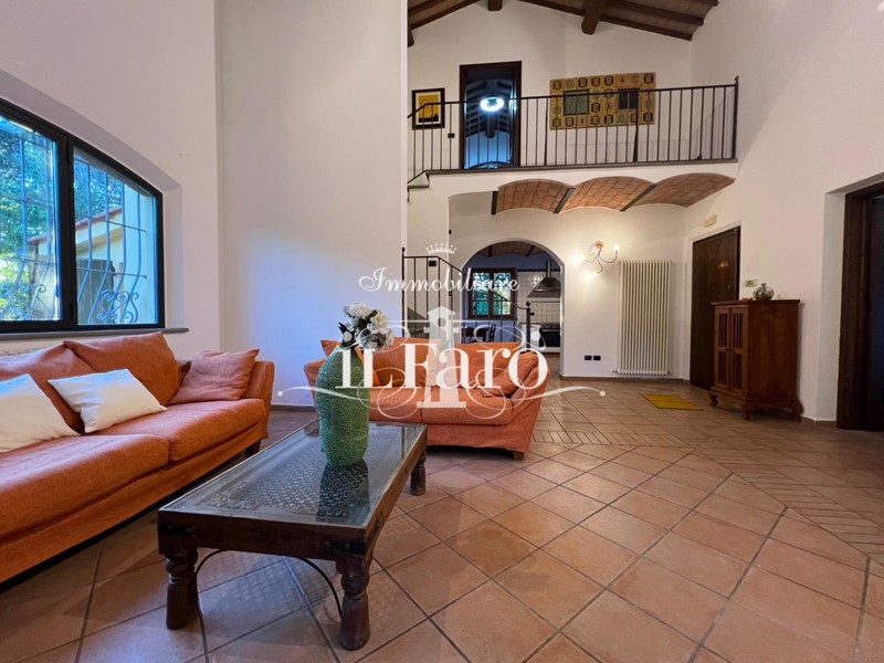 L’ ingresso è al piano terra, nell’ ampio soggiorno caratterizzato da grandi e caratteristiche finestrature e da un bel camino; una porta finestra conduce sulla pergola esterna che si apre nello splendido giardino; proseguendo troviamo un'ampia Cucina Abitabile e il disimpegno notte dove si trovano una camera doppia di 13 mq, un ampio bagno con doccia e finestra, una camera matrimoniale con porta finestra che apre sul giardino, dotata di bagno esclusivo finestrato e cabina armadio finestrata;