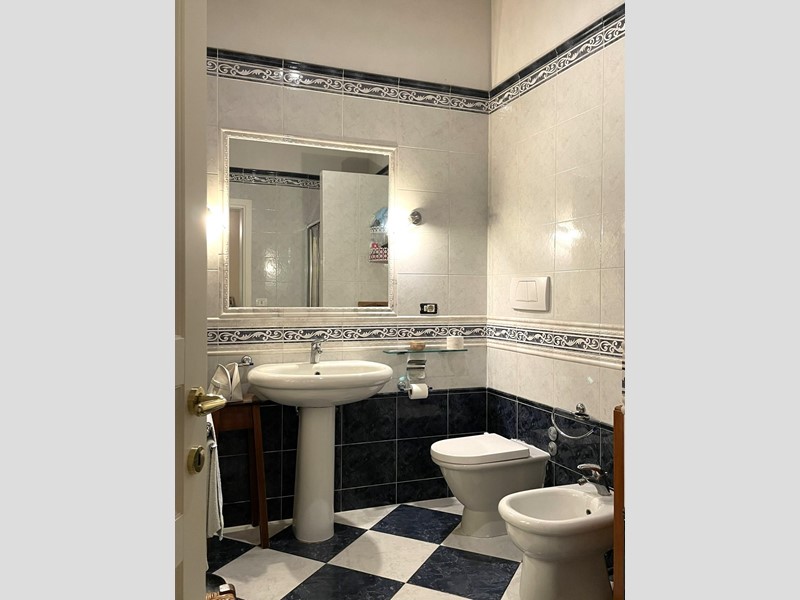 L'ingresso indipendente con ascensore conduce a un corridoio che serve due camere da letto: una matrimoniale e una singola, entrambe con bagno privato. Proseguendo si accede a un ampio soggiorno luminoso, collegato a una cucina con zona pranzo.
