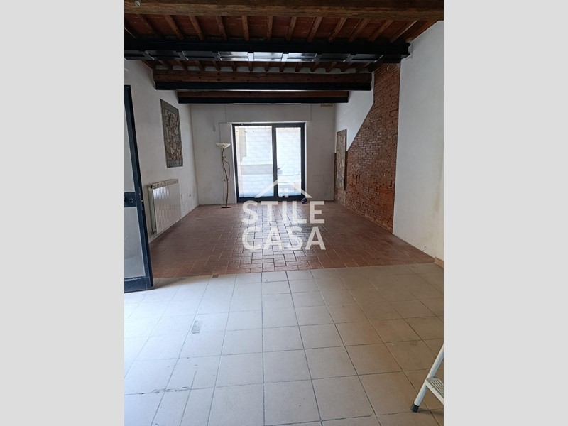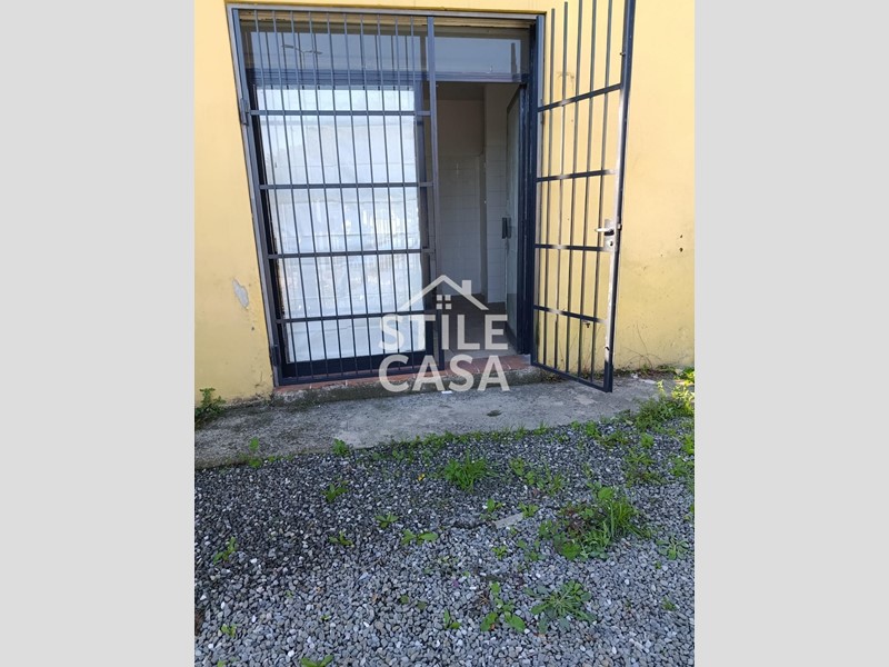 Si può comodamente dividerlo in due stanze, ha una vetrina su strada, un ingresso sul retro che si affaccia sul resede privato e recintato di circa 100 mq utile per poter posteggiare o utilizzare come scarico/carico merce.