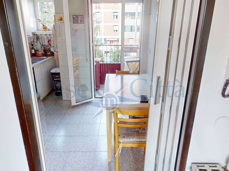 è composto da: ingresso, un ampio soggiorno con accesso al balcone, una cucina abitabile con secondo balcone, disimpegno, una camera matrimoniale, una cameretta funzionale, un bagno finestrato e un pratico ripostiglio. Completa la proprietà una cantina.