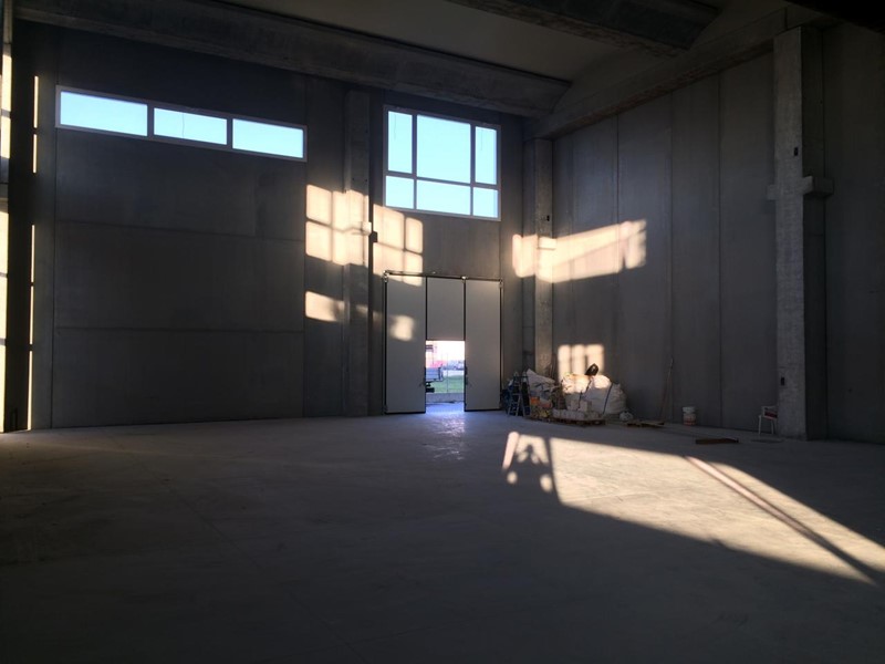 Capannone di nuova costruzione. 400mq con h. 9 metri oltre 250mq di uffici su 3 piani con ascensore interno. Ingresso pedonale e ingresso carico/scarico merci h 6metri.