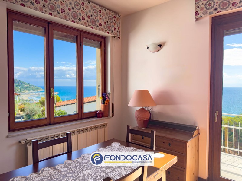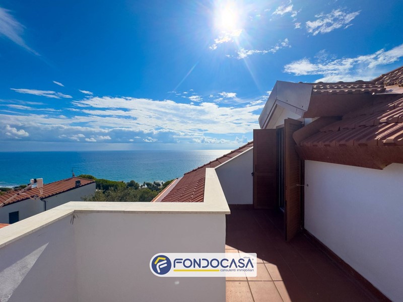 Lingresso si apre su una spaziosa zona giorno, ideale per accogliere e vivere momenti in famiglia o con amici, arricchita dalla meravigliosa vista mare godibile anche della terrazza.