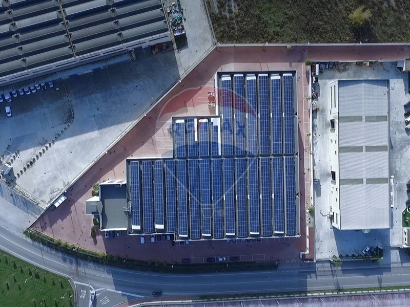 10.015 mq. area complessiva appezzamento, con aiuole e tre accessi con apertura automatica.