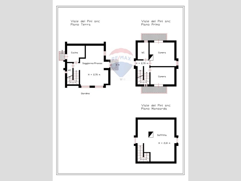 La proprietà si sviluppa su tre elevazioni per un totale di 107 mq ed è composta da: