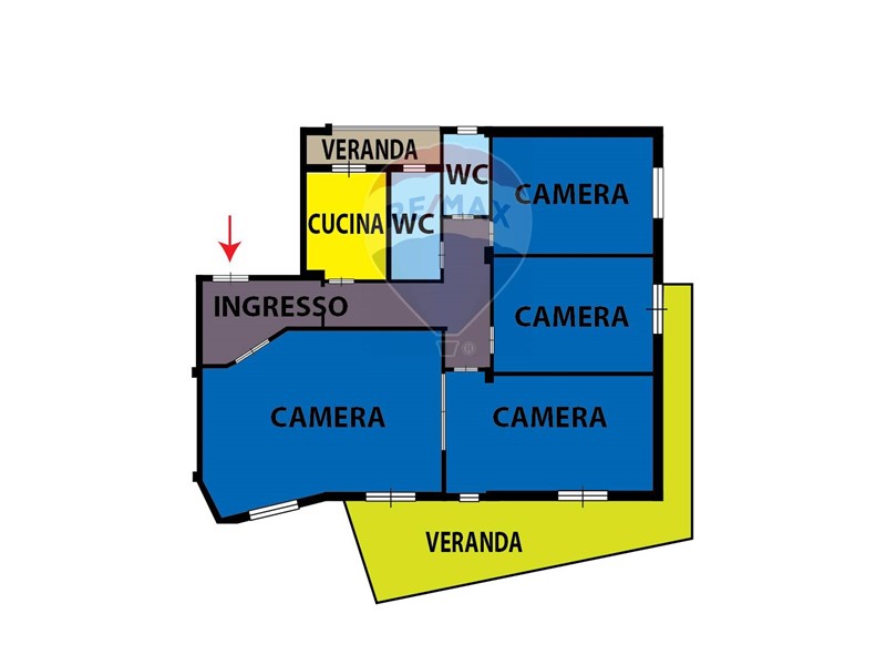 L'immobile, al 1^ piano di una elegante e tranquilla palazzina, si sviluppa in un ingresso disimpegnato, salone, tre vani, cucina e due bagni, oltre ad ampio spazio in passato già adibito a giardino d'inverno.