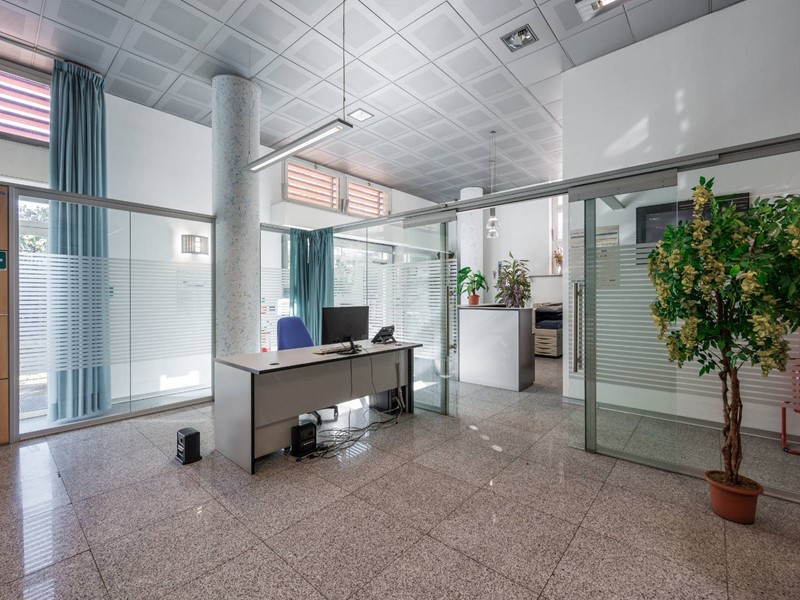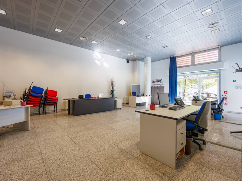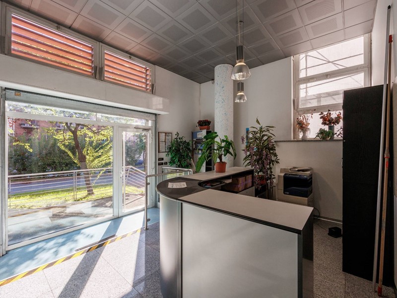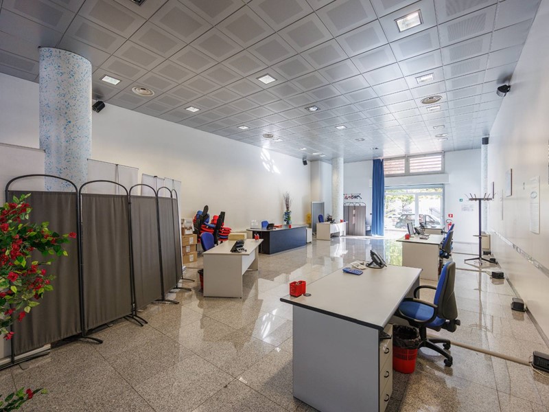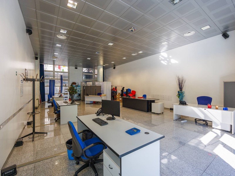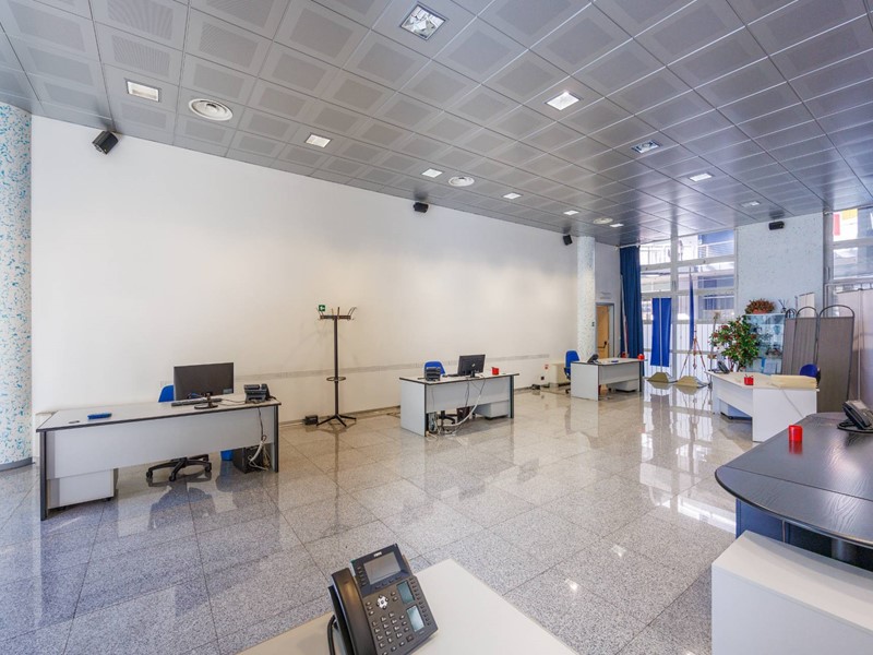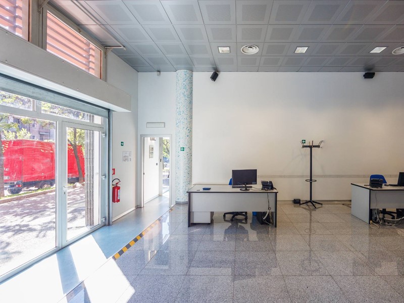 Gli spazi interni sono facilmente modulabili e attualmente comprendono: una reception accogliente, una sala riunioni, unarea break e una zona open space che ospita 14 postazioni di lavoro. Completano la disposizione una sala conferenze con capienza fino a 99 persone, locali tecnici e due servizi igienici. Le vetrine sono dotate di serrande motorizzate, il riscaldamento e il raffrescamento sono autonomi (circa 3.500 euro/anno), l'immobile viene venduto come si vede in fotografia, con pavimenti galleggianti, controsoffitti con corpi illuminanti e completamente cablato. Zona commercialmente molto vivace.