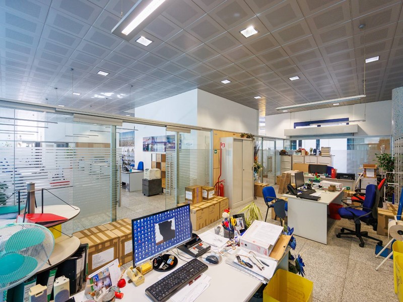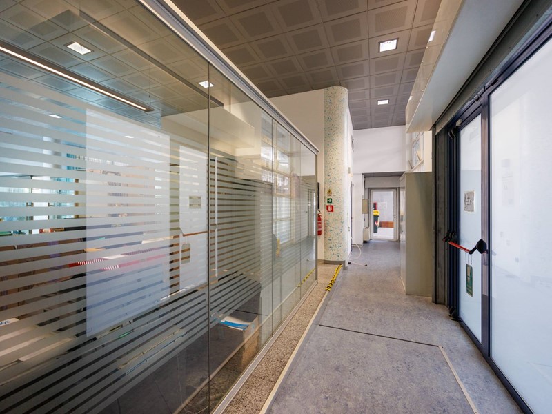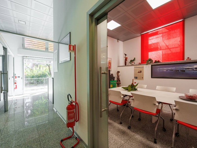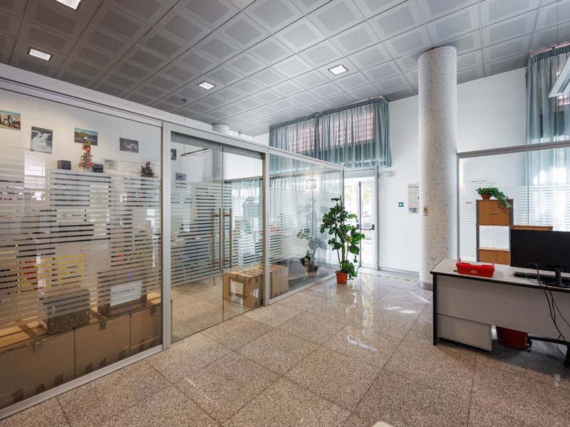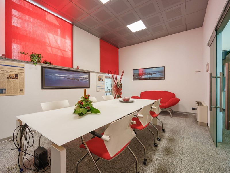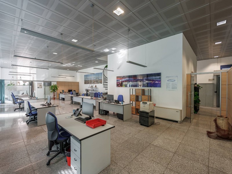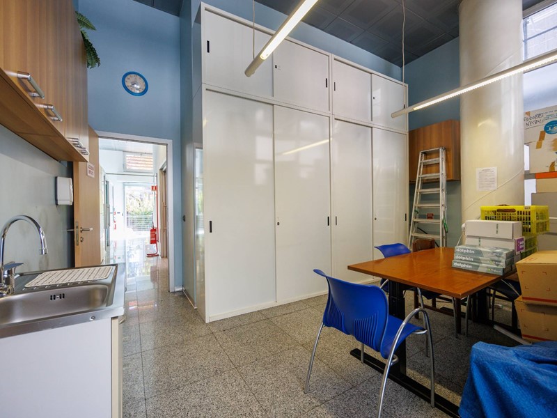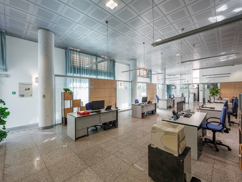 Gli spazi interni sono facilmente modulabili e attualmente comprendono: una reception accogliente, una sala riunioni, unarea break e una zona open space che ospita 14 postazioni di lavoro. Completano la disposizione una sala conferenze con capienza fino a 99 persone, locali tecnici e due servizi igienici. Le vetrine sono dotate di serrande motorizzate, il riscaldamento e il raffrescamento sono autonomi (circa 3.500 euro/anno), l'immobile viene venduto come si vede in fotografia, con pavimenti galleggianti, controsoffitti con corpi illuminanti e completamente cablato. Zona commercialmente molto vivace.