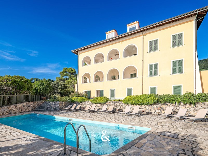 La residenza è situata su un promontorio dal grande fascino, dotata di circa 5.500 mq di verde e aree condominiali, ristrutturata completamente nel 2008 e composta da sole 9 unità, servita da ascensore.