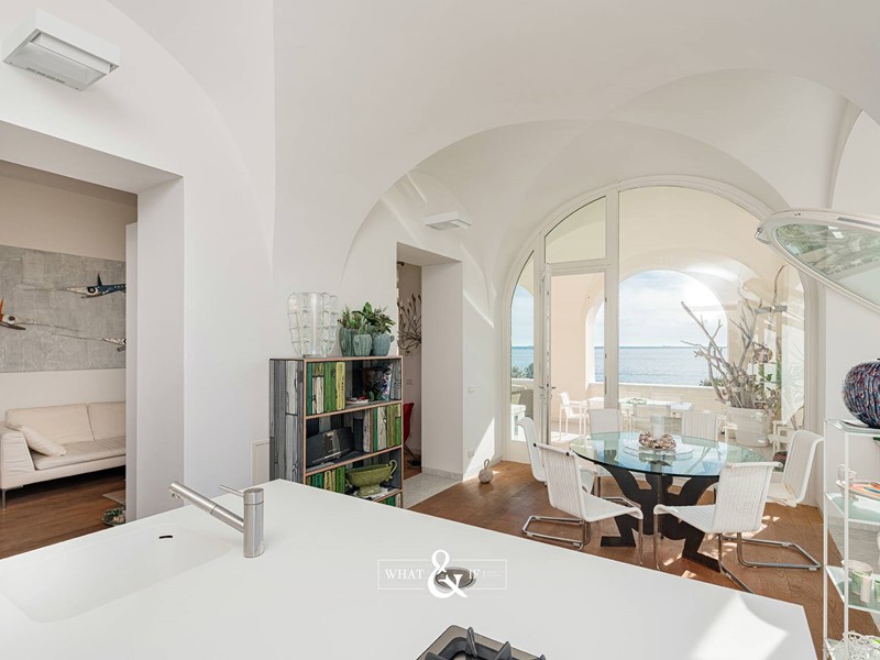 Il layout interno ricercato ed allo stesso tempo funzionale senza essere banale, gli affacci di questa meravigliosa proprietà, le finiture, gli arredi fissi, i due posti macchina, la piscina comune, laccesso diretto al mare e latmosfera di questo posto, fanno di questa proprietà un sogno.