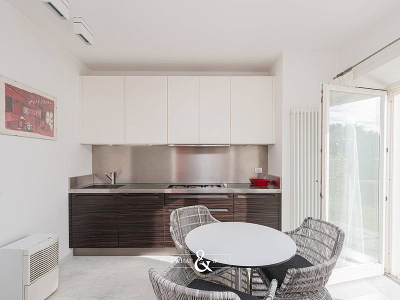 Appartamento di 220 mq al piano terra composto da ingresso, salotto, cucina open space e con vista eccezionale oltre allaccesso alla doppia loggia, camera da letto con cabina armadio e accesso al giardino, due bagni e uno studio sul soppalco, al piano sottostante due stanze, due bagni, lavanderia, zona giorno con cucina e uscita diretta sul giardino in uso esclusivo oltre ai locali accessori.