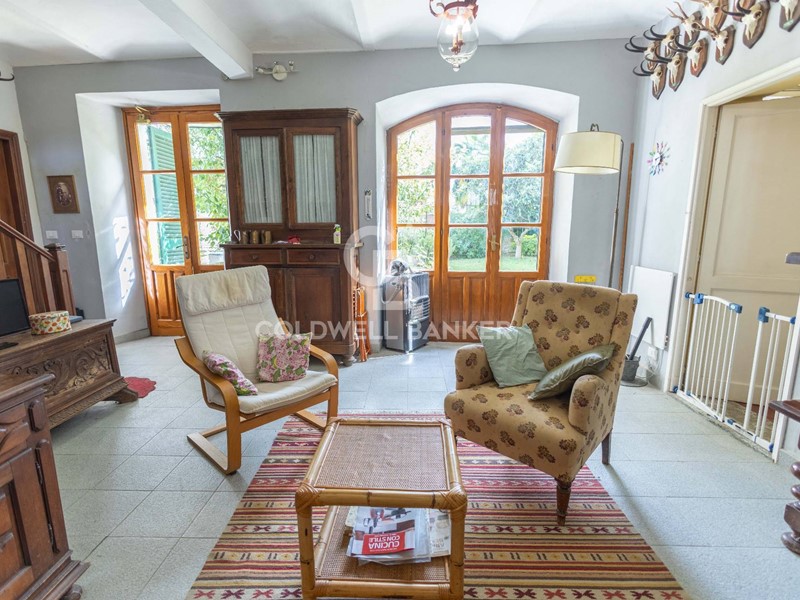 La proprietà è completata da unampia cantina con volta in pietra e da un portico con camino, nel giardino, perfetto per pranzi e cene allaperto.