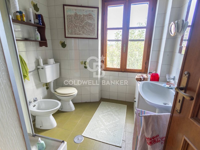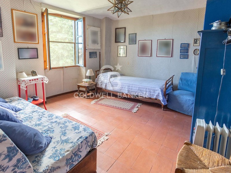 La torretta, elemento distintivo della proprietà, impreziosita da un elegante fregio ad archetti pensili in mattoni, si sviluppa su tre piani e regala una suggestiva vista sul borgo e sulle dolci colline circostanti.