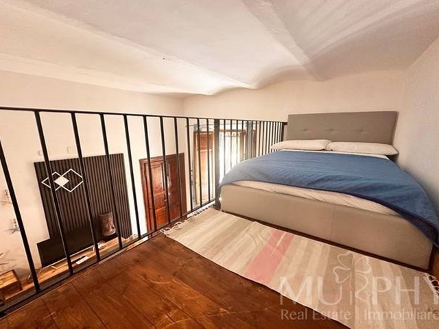 Grazie allaltezza generosa dei soffitti, lambiente ospita un soppalco, accessibile tramite scala fissa, attualmente utilizzato come zona notte con letto matrimoniale , soluzione ideale per ottimizzare lo spazio senza rinunciare al comfort.