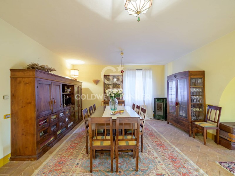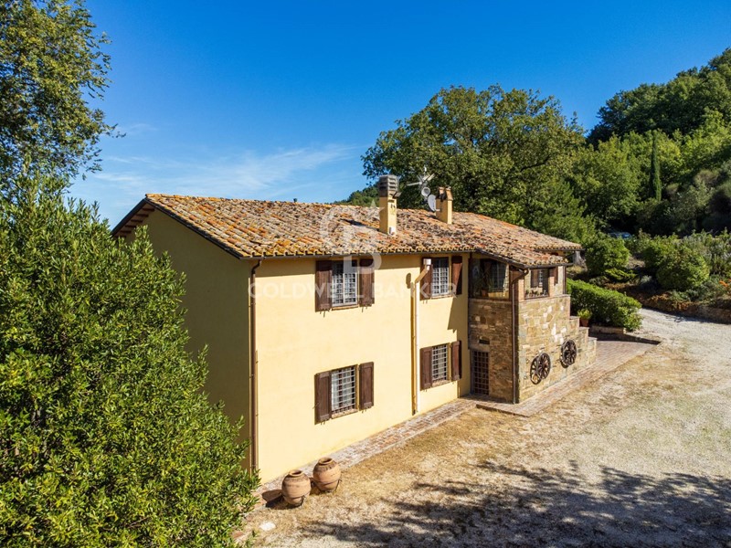Il fabbricato principale è stato ristrutturato con gusto ed eleganza, presenta dettagli raffinati che ne esaltano il carattere autentico. I pavimenti sono di tipico cotto umbro, elegante listone in legno e ceramica in monocottura. Gli infissi con doppio vetro, grate, zanzariere e impianto di allarme con videocamere. Decorano porte e pareti delicati motivi floreali dipinti a mano da abile artigiano locale.