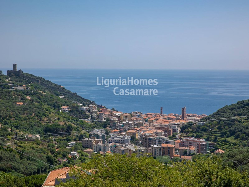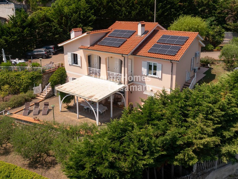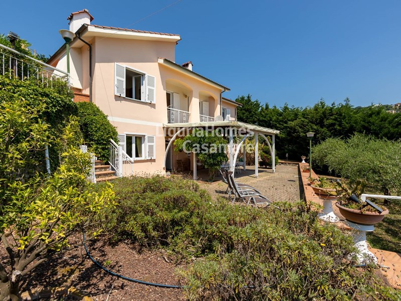Sulla primissima collina di Noli, a pochi minuti dal mare cristallino di questa rinomata località, bellissima villa in vendita con giardino privato e spettacolare vista mare.