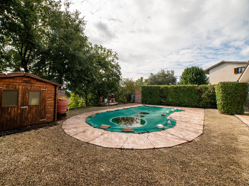 La peculiarità della villa è la piscina ovale unica nella zona. Questo particolare spazio esterno ha un ruolo sostanziale, soprattutto nelle giornate estive, dove trascorrere momenti di convivialità in compagnia oppure rilassarsi al sole immergendosi nella quiete circostante.