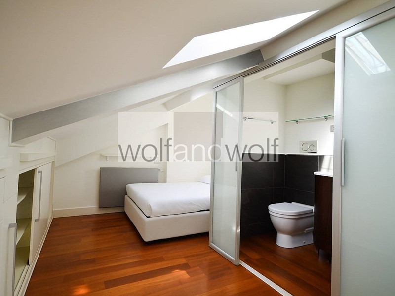 L'immobile è completamente ristrutturato e arredato con materiali di alta qualità e arredato a nuovo. Al quarto piano si sviluppano lingresso, lampio salone con zona pranzo, la cucina abitabile, la camera padronale con bagno en suite, una seconda camera con bagno dedicato, un ulteriore bagno di cortesia e la lavanderia. Una scala interna conduce al piano superiore, dove si trova una terza camera da letto con bagno privato.