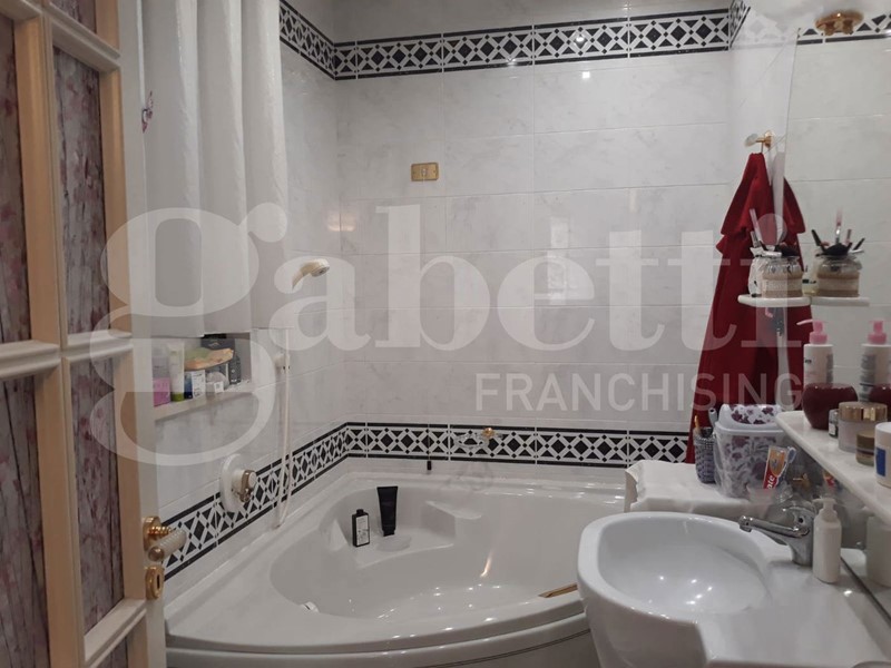La casa, in buone condizioni, ha ingresso sull'ampio salone doppio con due grandi finestre (che rendono la stanza luminosa) corridoio, bagno principale con vasca e finestra, doppio servizio con doccia e vano destinato alla lavanderia, cucina soggiorno con doppio accesso alla veranda esclusiva chiusa a vetri, camera da letto singola con finestra, camera da letto matrimoniale con balcone esclusivo e con esposizione esterna, posto auto libero scoperto nel contesto recintato.