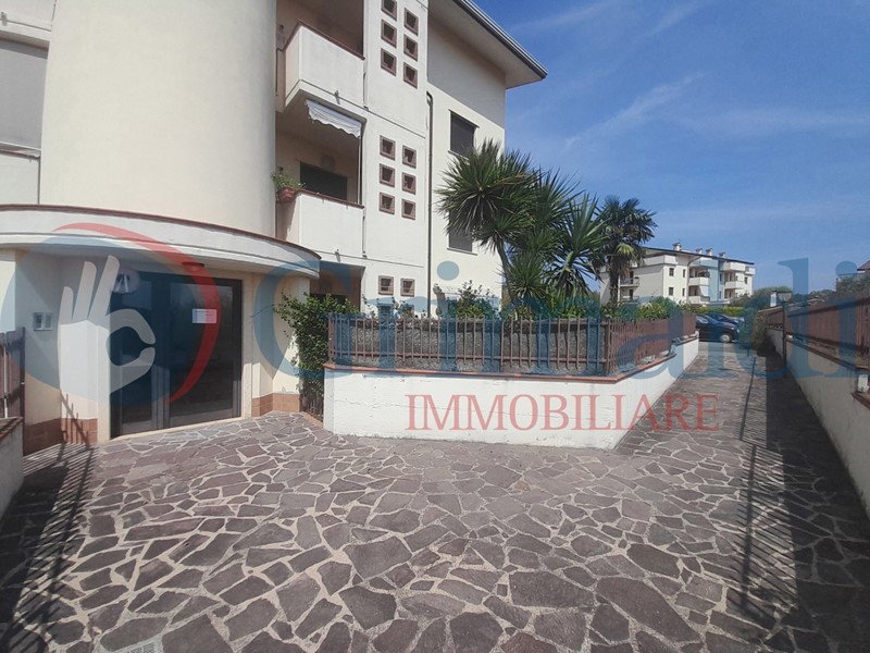 Alle porte della città, in parco chiuso, proponiamo la vendita di un comodo appartamento di 80 mq circa, con confortevole giardino di 150 mq, in parte pavimentato ed attrezzato; oltre box auto e posto auto assegnato in area condominiale.