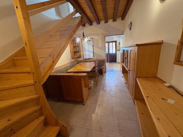Caneva, località Sarone, casa a schiera in centro paese, disposta du tre livelli e lotto di terreno privato fronte casa di 150 mq. ideale per posto auto e orto. Composta da salotto, sala da pranzo, cucina, bagno, due camere e cabina armadio. Finiture in legno..