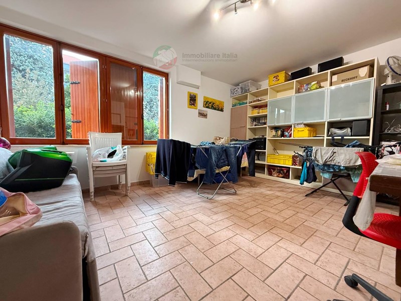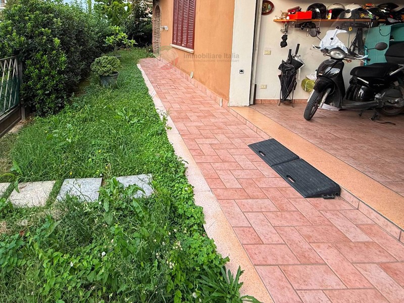 L'ingresso avviene direttamente dal giardino privato al piano terra, dove un comodo ascensore interno collega alla zona abitativa del primo piano. La casa è stata interamente ristrutturata nel 2008, con finiture moderne, tonalità chiare ed eleganti, ottimi impianti e dettagli pensati per il benessere quotidiano. La parte esterna dell'edificio non è stata oggetto di interventi di ristrutturazione.