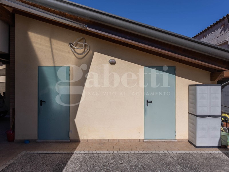 Dehor esterno con locale accessorio di 25 mq adibito a ripostiglio/multiuso: uno spazio versatile per hobby, deposito o piccola officina domestica.