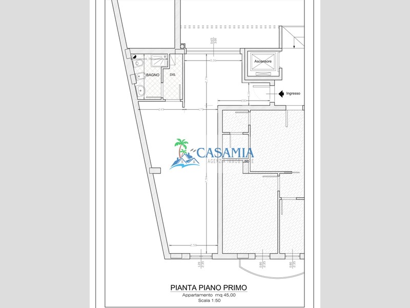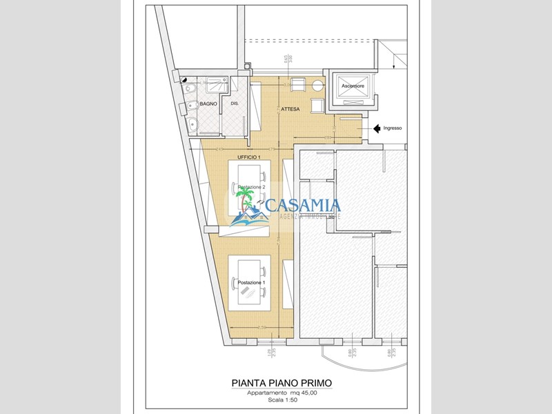 Nelle vicinaze dell'Ospedale civile in palazzina del 2005 visibile su strada principale, monolocale adibito ad uso ufficio posto al piano 1° servito da ascensore. L'unità immobiliare gode di un'unica esposizione a sud, ha una superficie coperta di circa 45 mq e si compone di un ingresso-reception, un grande vano finestrato ed un bagno con antibagno ad aerazione forzata. Ottime rifiniture, impianto di aria condizionata caldo-fredda, pavimentazione in parquet, infissi in PVC con doppio vetro, persiana in alluminio, videocitofono e portoncino blindato. Possibilità di personalizzare il monolocale in base alle proprie esigenze. Si valutano solo conduttori referenziati. Agenzia Immobiliare CasaMia.