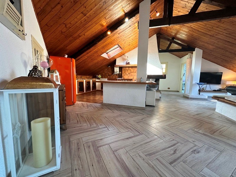 L’immobile è composto da ingresso su zona soggiorno con cucina in muratura a vista, due camere, bagno finestrato con vasca, ripostiglio ed il soleggiato terrazzo vivibile di circa 8 mq con vista sulla città.