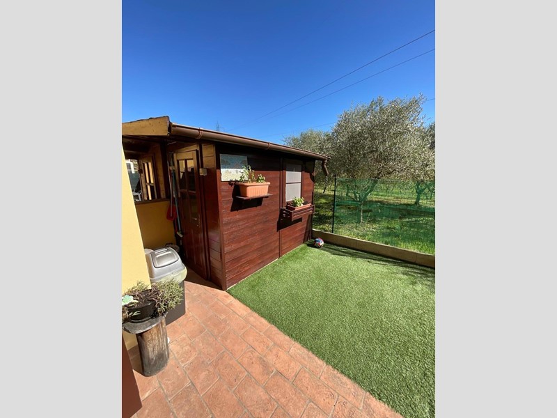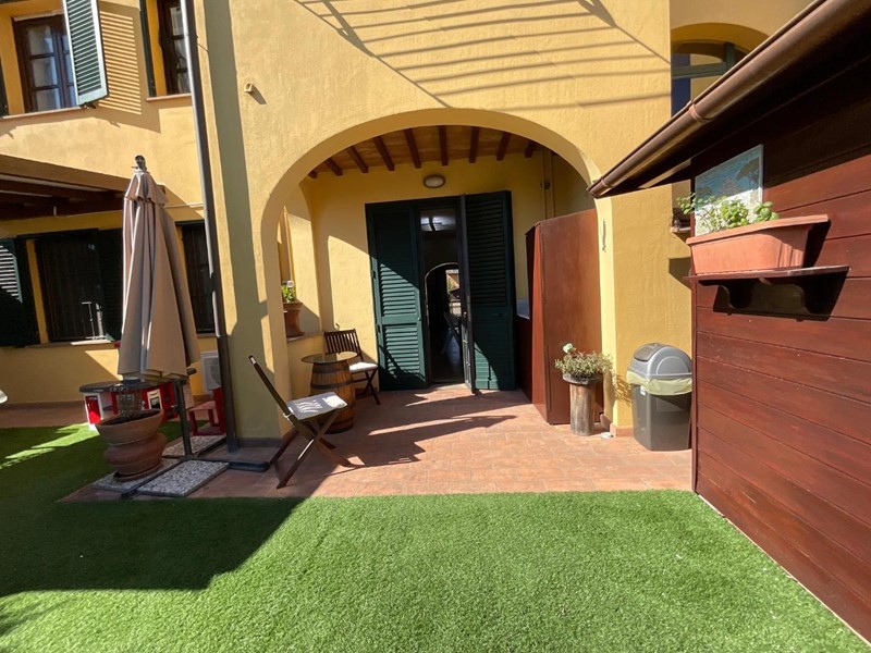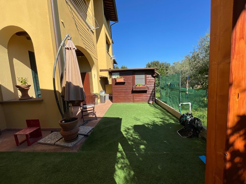 Fornacette - NOSTRA ESCLUSIVA - Appartamento posto al piano terra di una bella palazzina di recente costruzione, al quale si può accedere sia da ingresso indipendente attraverso resede esclusivo che da vano scala condominiale. L'appartamento si compone di ingresso in soggiorno con portico, cucina abitabile con accesso al giardino privato che comprende: un secondo portico, un pergolato adatto per cene all'aperto, un barbeque e una casetta in legno; disimpegno notte, 2 camere, ripostiglio e bagno. Completa la proprietà il posto auto esclusivo all'interno del resede esclusivo antistante l'abitazione. L'appartamento ha belle finiture (imbiancature curate nei dettagli, alcune opere in cartongesso con faretti incassati, climatizzatori, addolcitore, inferriate di sicurezza, ecc.). Consegna fine 2026. Classe Energetica C - Richiesta € 205.000 Rif. 1490