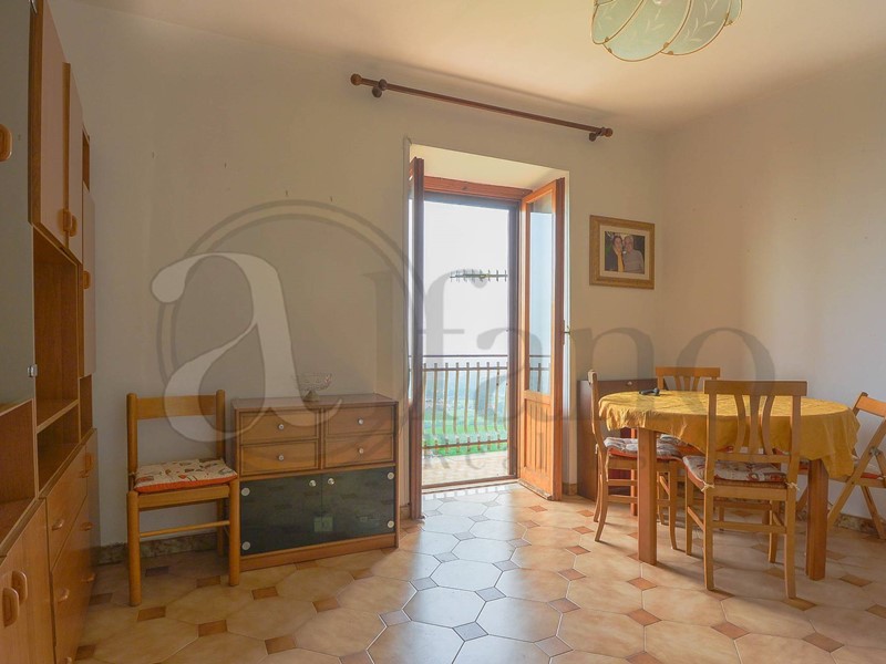 Lingresso è indipendente e conduce direttamente nella zona giorno, composta da una cucina spaziosa con camino il cuore caldo della casa e un soggiorno ampio, con accesso a un balcone che regala una splendida vista sulla vallata.