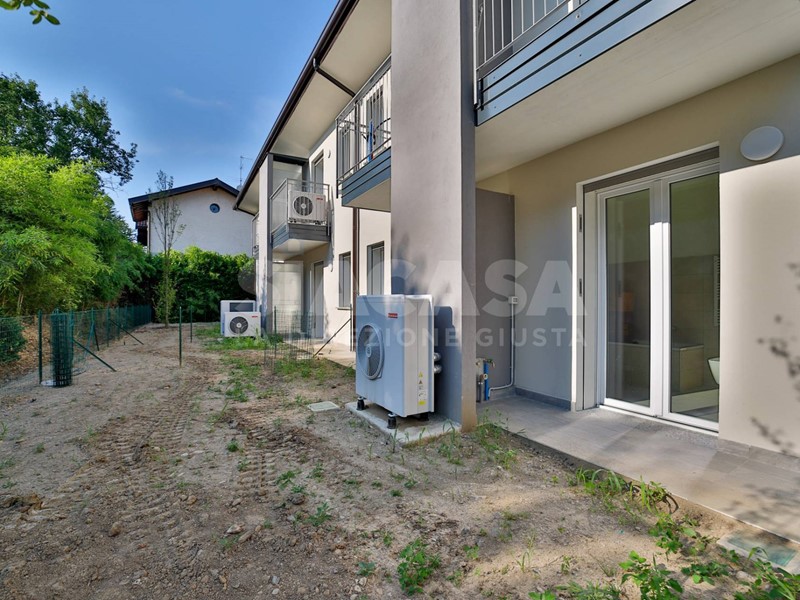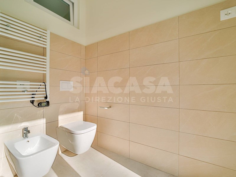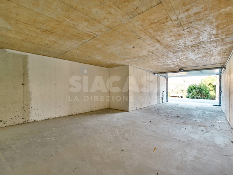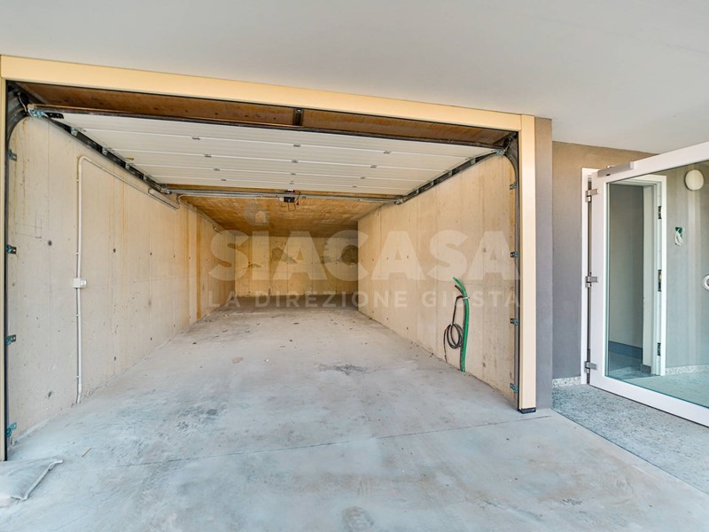 Completa la proprietà una comoda autorimessa di 52 m², dotata di portone sezionale motorizzato e collegamento elettrico diretto con lappartamento.