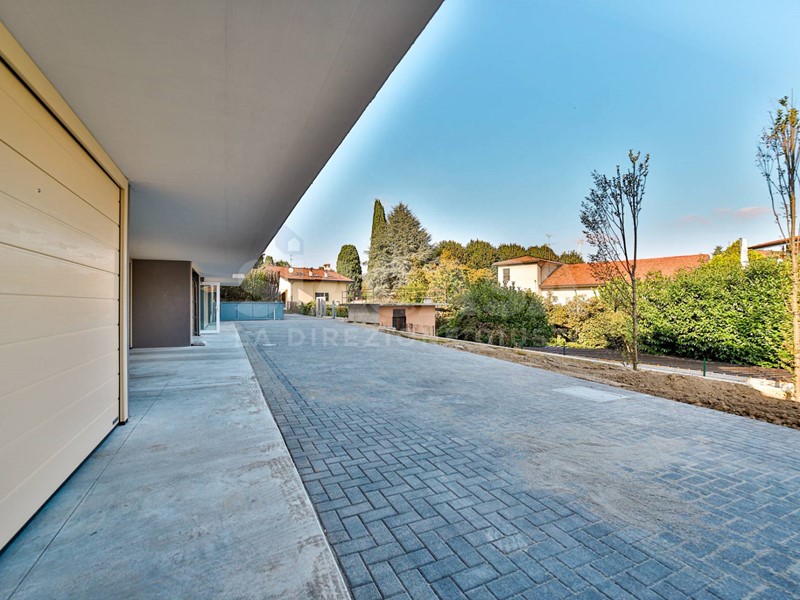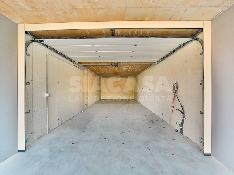 Completa la proprietà un box doppio di 38 m², dotato di portone sezionale motorizzato e collegamento elettrico diretto con lappartamento.